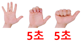 1. 손가락을 펴서 첫 번째, 두 번째 마디를 굽혀 5초간 유지한다.