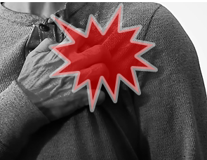 심근경색의 가장 일반적인 증상으로 가슴을 조이는 듯한 심한 통증을 느낀다. 게다가 목까지 쥐어짜는 듯한 느낌과 바위가 내 몸을 묵직하게 짓누르는 뻐근한 통증이 특징이다.