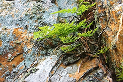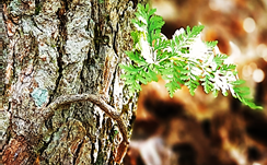 골쇄보(넉줄고사리)는 오래된 고목이나 바위에 붙어사는 식물이다.