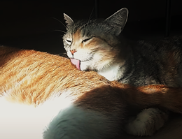 털에 묻는 이물질을 제거하고 몸의 열을 내리기 위해 온몸을 핥는 행동을 말한다.