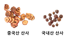 우리나라 토종 산사는 열매가 작은 것이 특징이며 중국산은 열매가 크다.