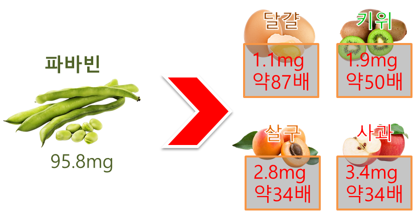 파비빈에는 콜린 성분이 수십 배 많이 함유하고 있다.