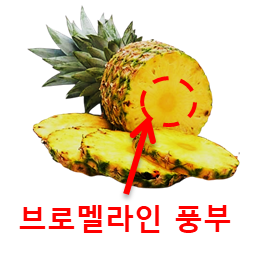 브로멜라인은 파인애플과 파인애플 줄기에 함유하고 있는 약성이 아주 좋은 성분이다.