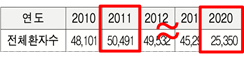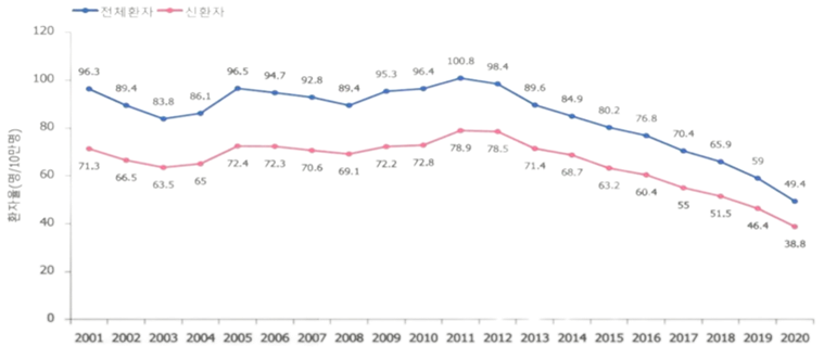※ 결핵환자 발생 현황(2010~2020), 단위 : 명
