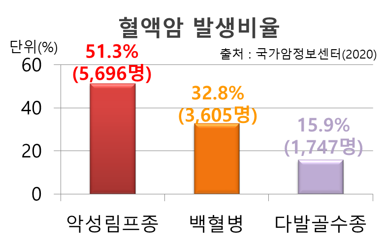 혈액은 액체 성분인 혈장과 세포 성분인 적혈구, 백혈구, 혈소판으로 이루어져 있는데 혈액암은 혈액의 구성 성분에 생긴 암을 말한다.