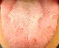 설태가 많은 혀의 경우에는 소화능력이 매우 떨어져 있고 몸속 노폐물이 많다는 것을 의미한다. 사진의 혀를 보면 가운데와 바깥쪽 혀의 색이 다르다.
