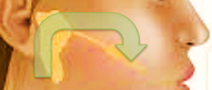 귀밑샘을 화살표 방향으로 마사지해 주면 침이 고이는 것을 경험할 수 있다.