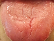 혀의 중앙에 줄이 가 있는 경우는 건조증이 시작되었다고 봐야 한다.