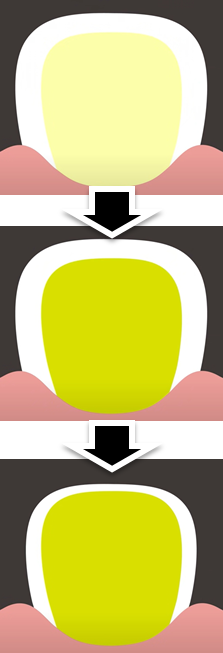 그래서 치아 전체가 어둡고 노랗게 비춰 보여서 더욱 노랗게 보이는 것이다.