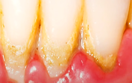 사진에서 보면 치아의 표면은 깨끗하지만 치석이 있는 곳이 노랗게 착색된 것을 볼 수 있다.