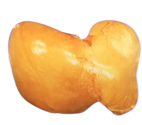 지방간은 약간 노란색을 띠며 간의 크기가 조금 더 증가한 모습을 하고 있다.