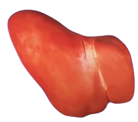 정상 간은 암적색을 띠고 표면도 아주 매끄럽다.