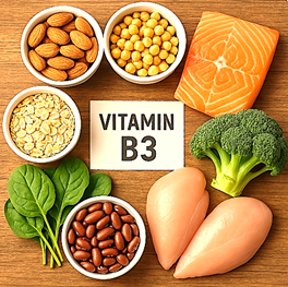 또한, 우리 몸은 트립토판(필수 아미노산)으로부터 일부 비타민 B3를 합성할 수 있기 때문에 단백질 섭취도 중요하다.