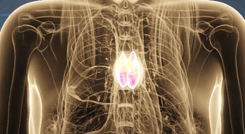 가슴 중앙 부분의 나비모양의 흉선이 있는데 이곳은 바이러스와 암세포를 죽이는 T세포(면역세포)의 성숙에 관여하고 정상 면역계의 발달에 영향을 준다.