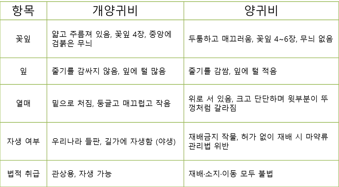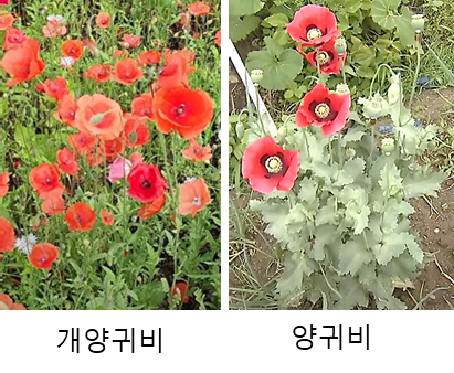 양귀비와 혼동하면 법적 문제가 생길 수 있으므로, 반드시 열매나 줄기 형태로 구분해야 한다.