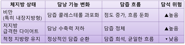 결국, "체지방 관리 = 담석 예방"과 거의 같은 의미로 봐도 무방하다.