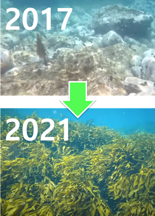 성게만 붙어있던 바위에 다시 미역·감태·대황 같은 해조류가 무성하게 자랐다.
