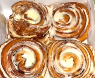 따뜻한 반죽 속에서 퍼지면서 버터·설탕·크림치즈·시나몬이 섞여 깊은 풍미를 낸다.