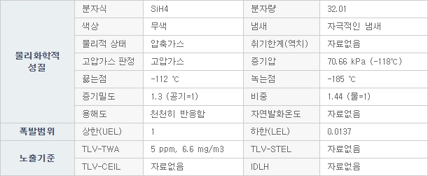 모노실란(SiH4)은 공기 중에 약 1~95%의 가연 범위 내에서 외부적인 착화원이 없이도 점화될 수 있다.